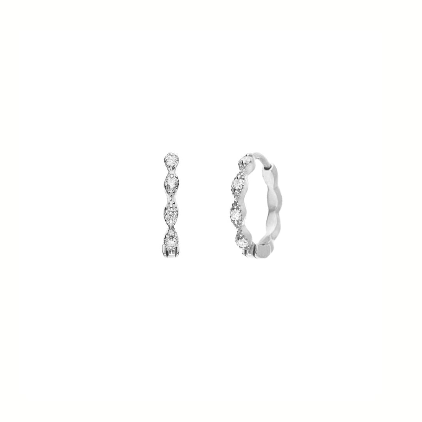 Sweet and simple, the Eleanor White Diamond Huggies are an effortless addition to jazz up your ear stack. Milgrain details add just enough texture for when you want to wear solo, too.