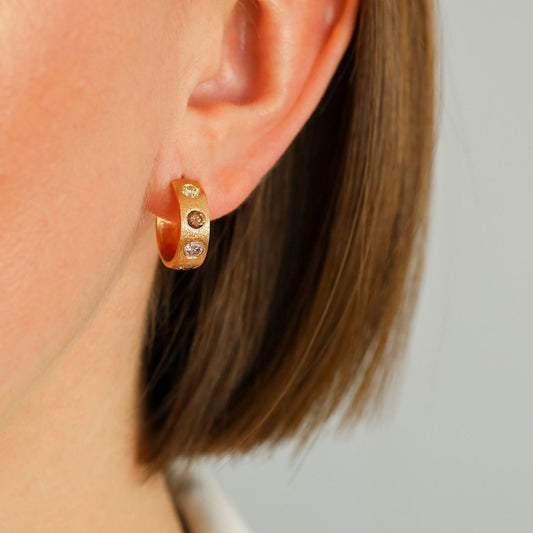 The presence of various elements during diamond formation within the earth creates color. Nitrogen, for example, can create a yellow hue, while Boron causes a bluish tint. Color diamond formation occurs naturally in the earth over millions of years under conditions of immense pressure and heat. The rarity of a natural fancy color diamond is one of the most influential characteristics of its value. The range of beauty across the possible shades of the rainbow in these diamonds leaves them intriguing and unique.