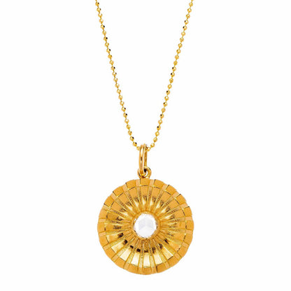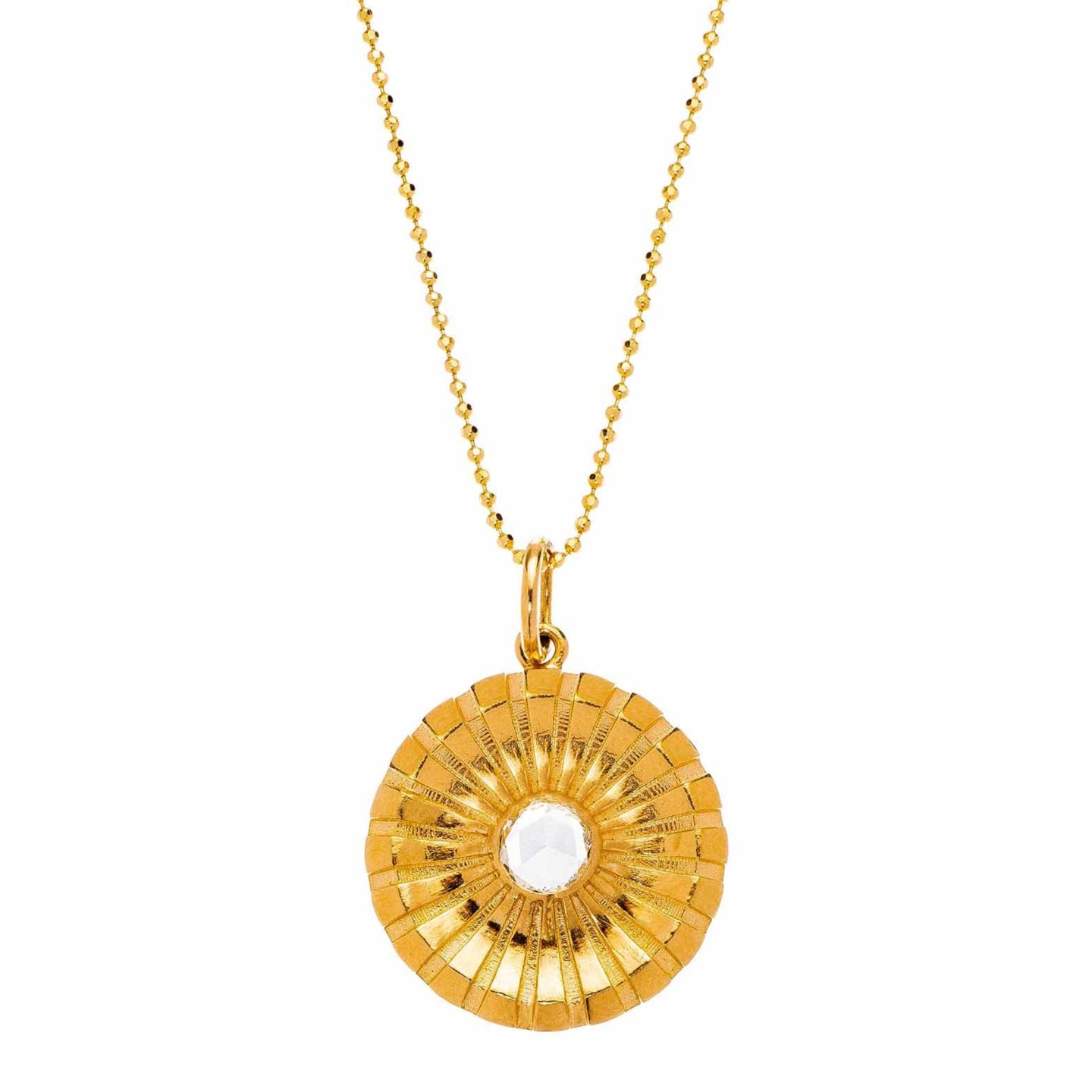Our Chakra White Diamond Necklace is inspired by the wheel motif, a notion of movement and strength to forge ahead both in bliss and in strife. Add to your everyday layering story as a reminder to keep on moving.