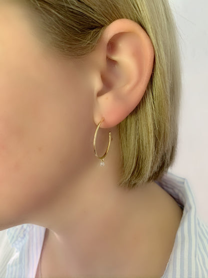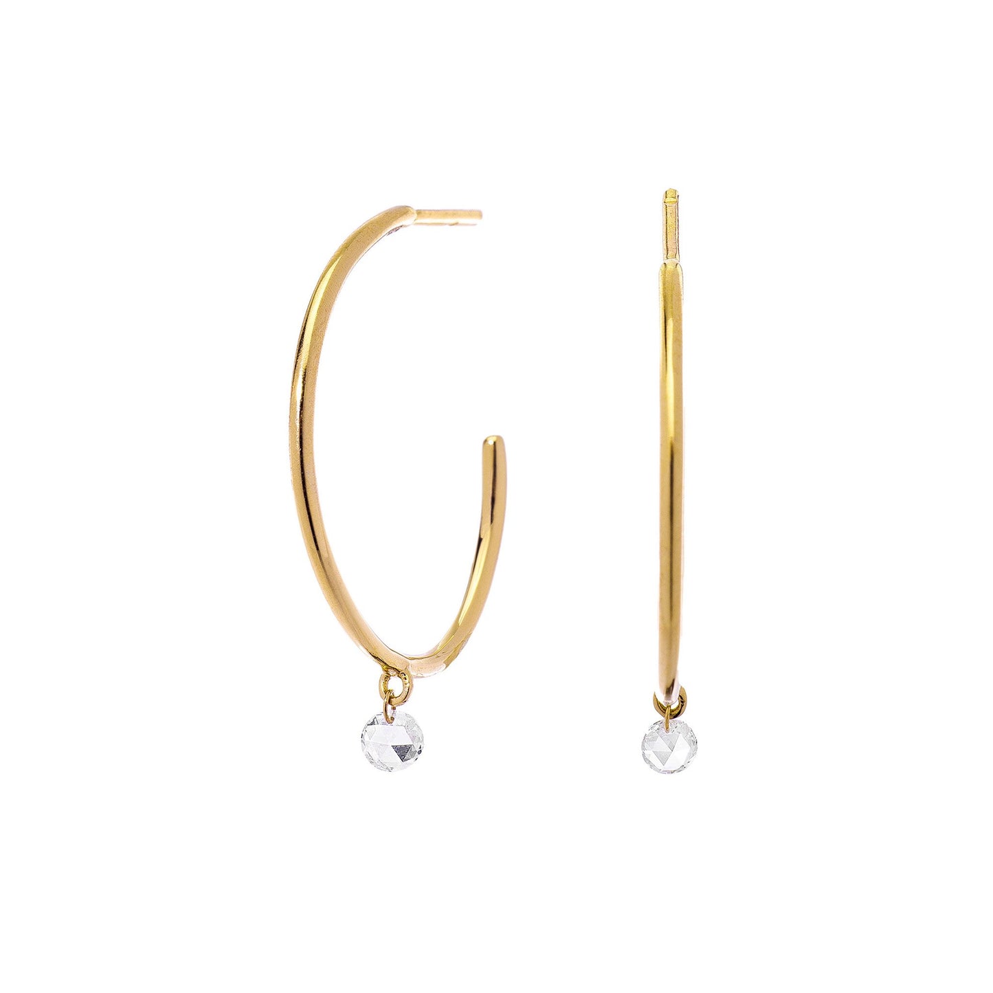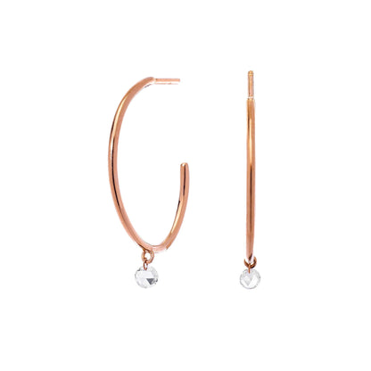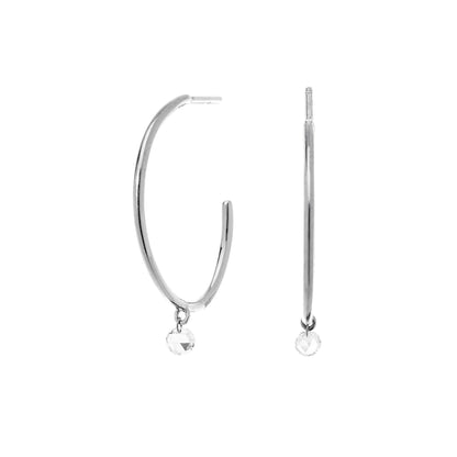From the Cien Collection, the Cien White Diamond Hoops are pure rose cut white diamonds resembling water droplets. Just enough sparkle to light up a room and add joy.