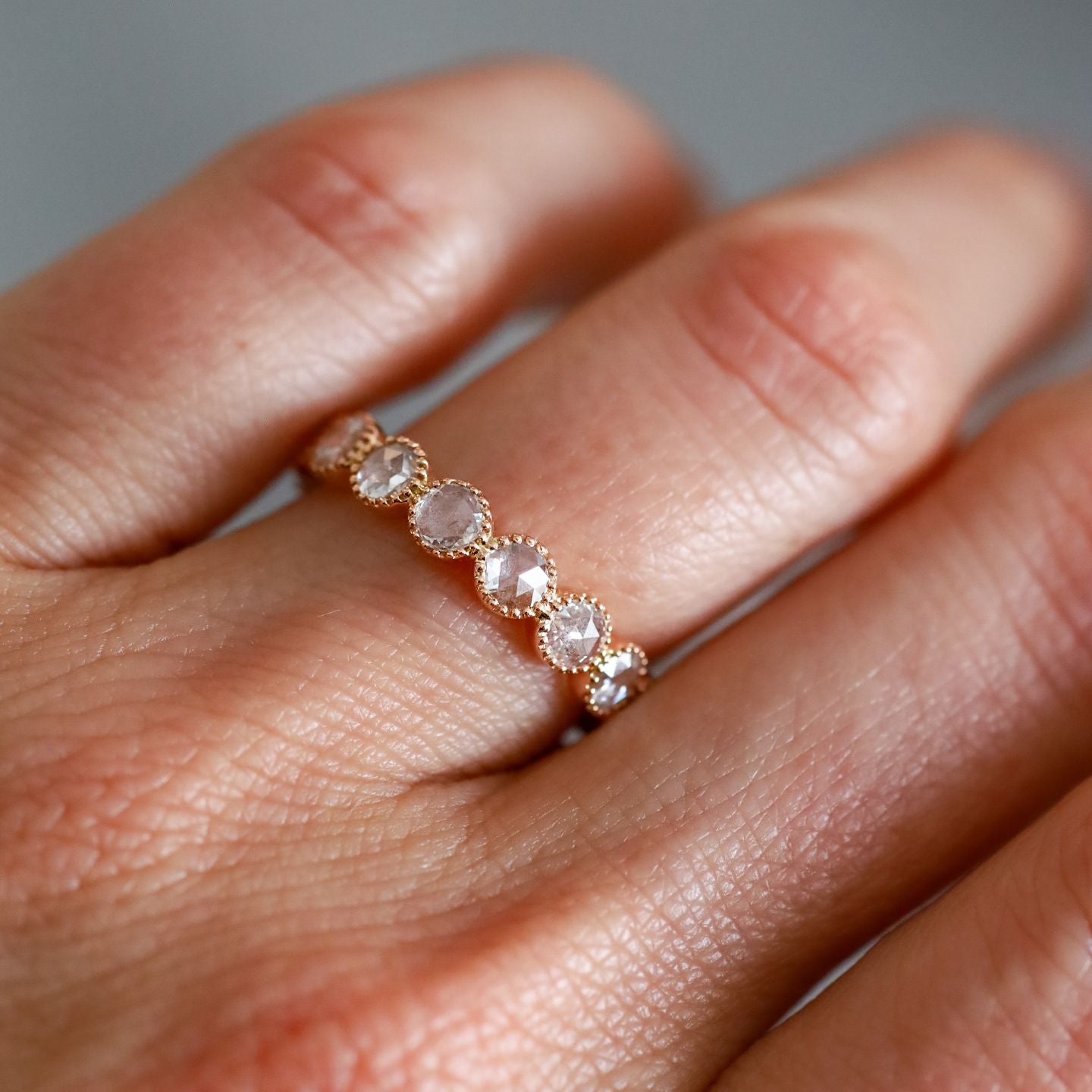 The Grace White Diamond Band is an easy indulgence of rose cut white diamonds wrapped up in milgrain finish. It really can all be so simple.