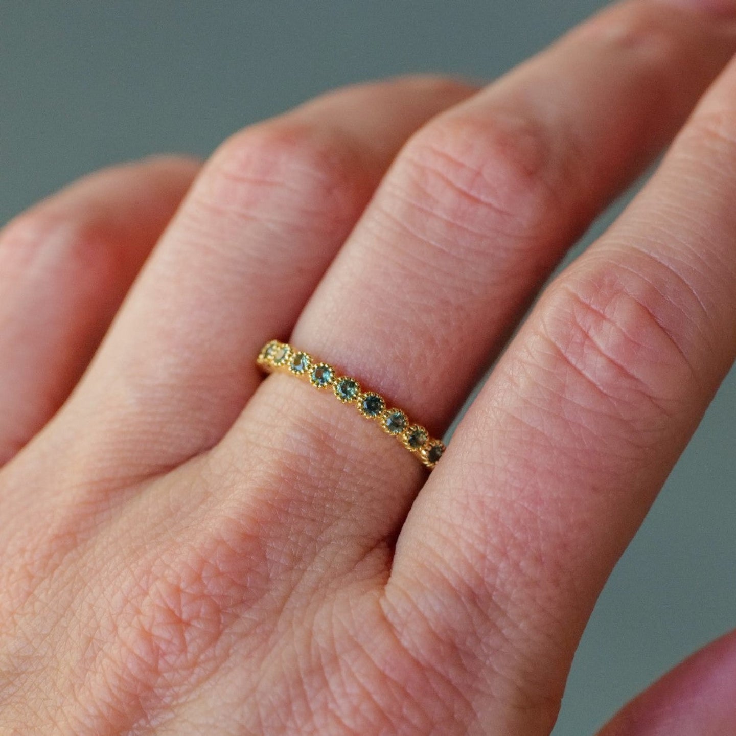 New to our Rainbow Sapphire Collection: the Green Sapphire Bezel Band. Add vibrancy to your stack story with earthy green sapphires.