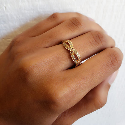 Our Infinity Champagne Diamond Band is a glowing twist on a universally-known shape. This band flows between straight and scalloped edge settings to provide a look that is the best of both worlds.