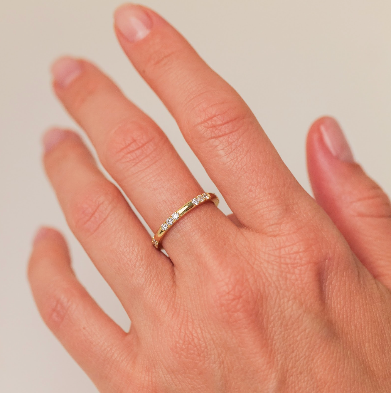 Like the moon, our Luna 3 Stone White Diamond Band is always there. With trios of brilliant cut white diamonds, she is calm but ever-present, complementing all around her while shining in her own right. To dim the light, try our Luna Single Stone White Diamond Band.