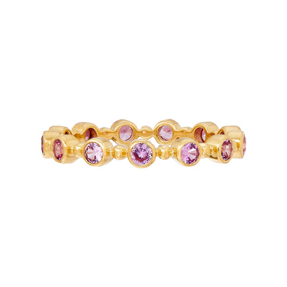 New to our Rainbow Sapphire Collection: the Pink Sapphire Petit Bubble Band. Add vibrancy to your stack story with playful pink sapphires.