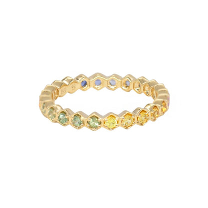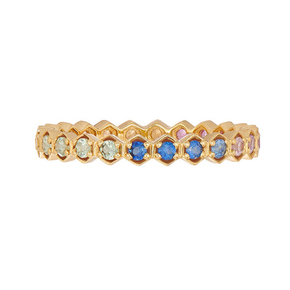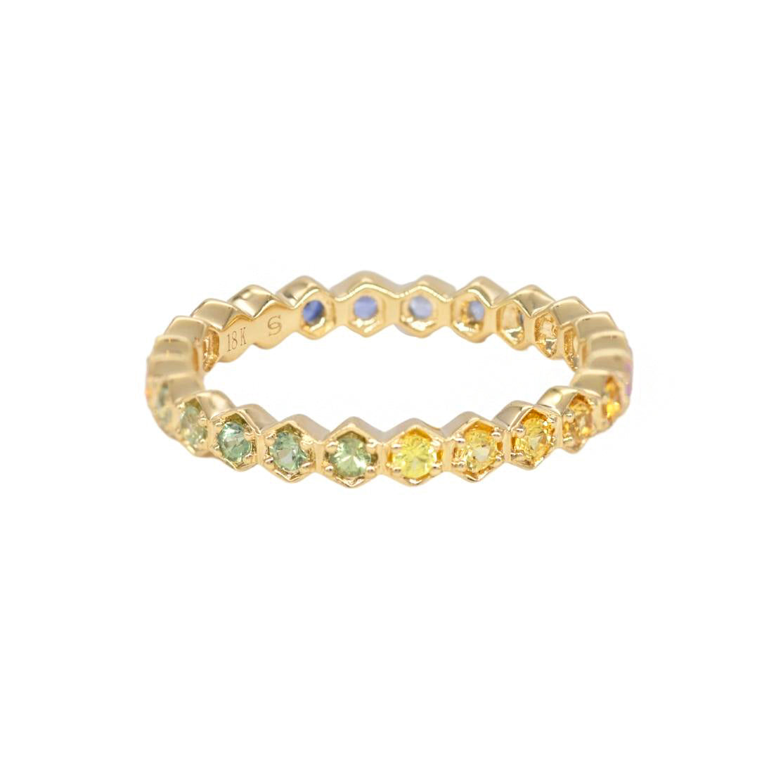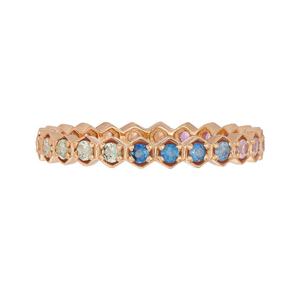 The Regency Band has joined the Rainbow Sapphire Collection. An energizing accent to your stack story, with hues of pink, orange, yellow, green and blue.