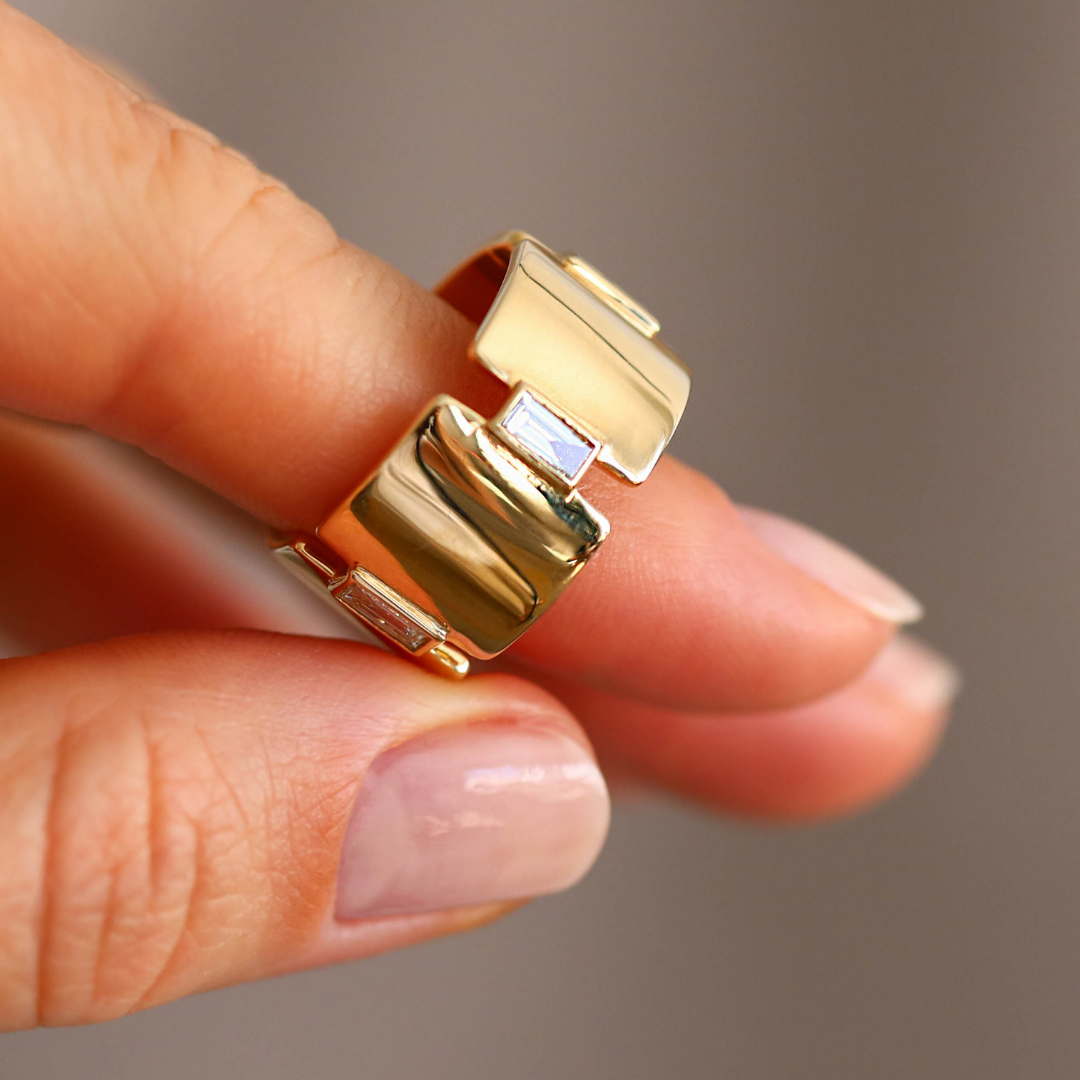 The Rolo White Diamond Wide Band strikes when it's hot, with a stunning architectural design to push progress forward.