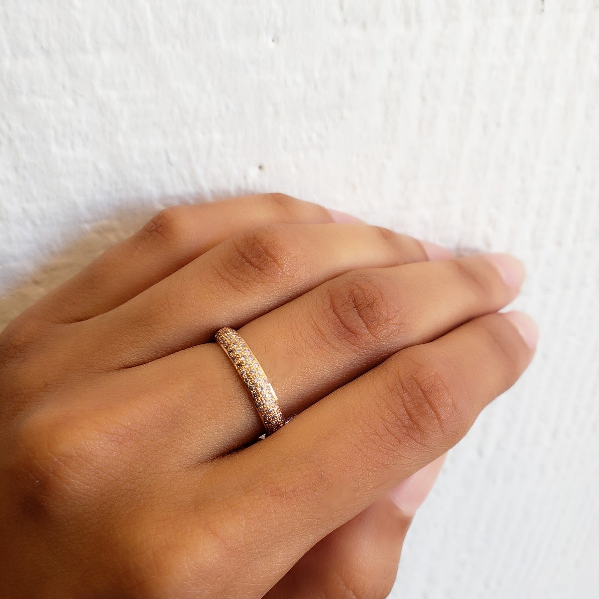 Blushing with pavé natural pink diamonds, our dome-shaped Tire Pink Diamond Band looks brilliant paired with other stack bands or worn on its own.