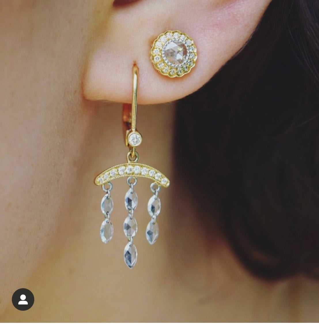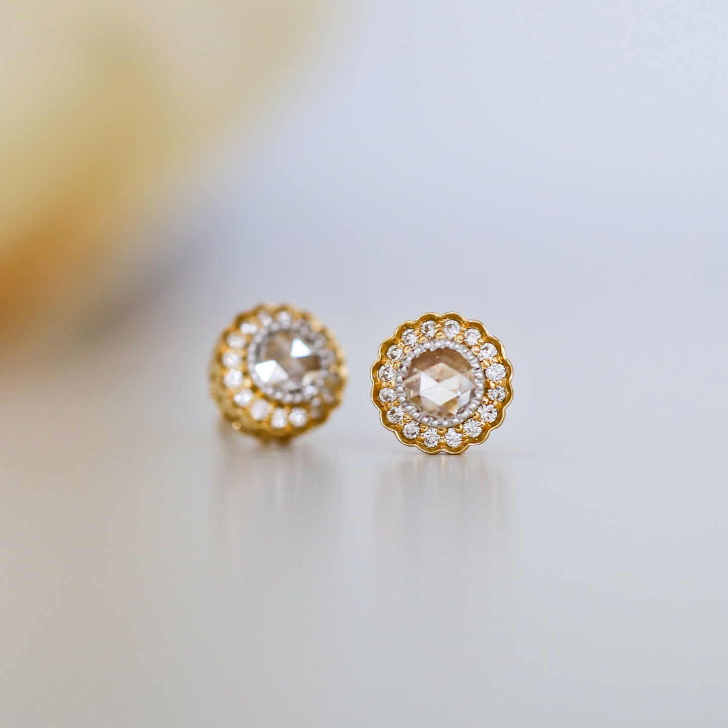 The True Romance White Diamond Stud Earrings radiate beauty wherever they go, with rose cut white diamonds and a scalloped milgrain edge.